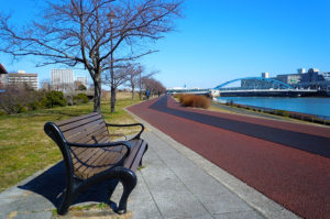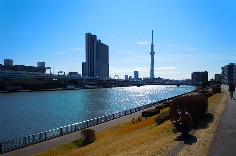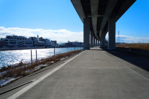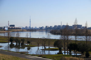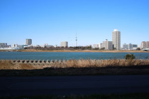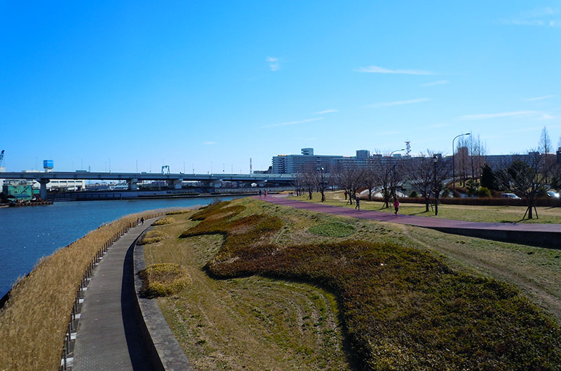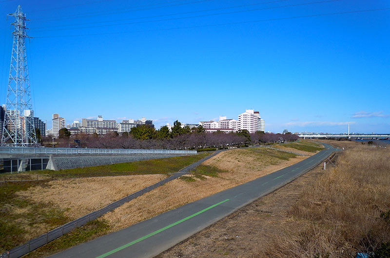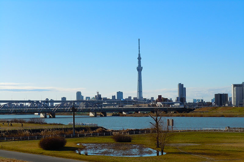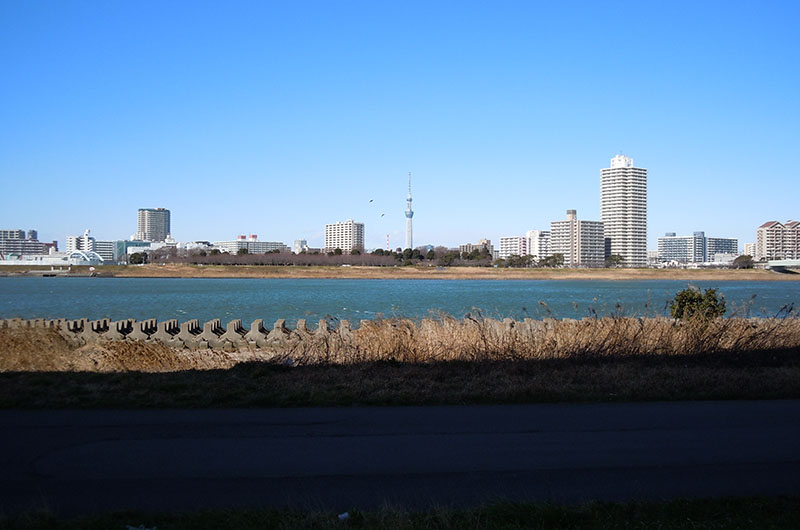 千住新橋から河川敷を歩いて、葛西橋の手前で 通行止め・・・ 戻って船堀橋を渡って、スカイツリーまで歩いてきた。 今日は北風が強くてバテバテ